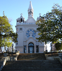 arquitectura medieval. É uma harmoniosa composição neogótica, embora tenha sido edificada em cimento por limitações de orçamento,