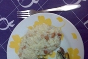 | Preparação: Aloure a cebola, o alho picados e o bacon cortado em cubos pequenos no azeite.