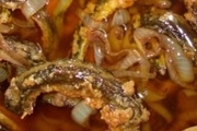 Fritam-se as enguias no óleo e escorrem-se em papel absorvente.