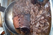 Acrescenta-se água suficiente para cozer a lampreia. Depois de cozida, retira-se a lampreia e, na mesma calda, coze-se o arroz, juntando-se por fim o sangue com vinagre.