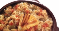 Cubra com folha de alumínio e leve ao forno 20-30 minutos ou até o arroz estar cozido.
